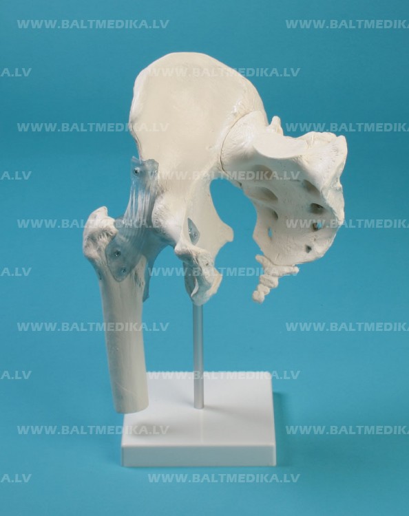 Gūžas locītava ar saitēm dabīgā izmērā, uz statīva. Locītava ir kustīga.