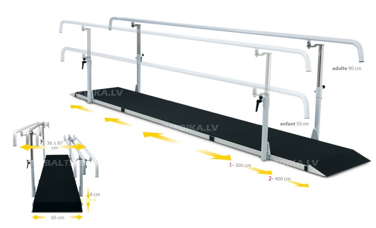 Paralēlās līdztekas ar pamatni un regulējamu platumu