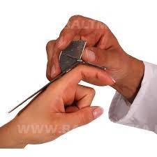 Nerūsējošā tērauda goniometrs pirkstu locītavu kustību diapazona mērījumiem.