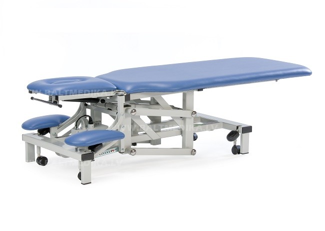 Īpaši spēcīgs un stingrs rāmis 2 sekciju kušetei ar galvas daļu, ar elpošanas atveri un aizbāzni, un regulējamiem roku balstiem, lai samazinātu sasprindzinājumu un nodrošinātu pacientam papildu komfortu galvas un kakla procedūru laikā.