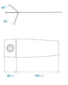 - Regulējama kāju daļa no -10° līdz 80° ar 2 gāzes atsperēm.