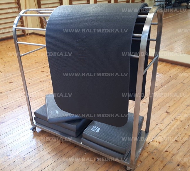 Statīvs ir paredzēts vingrošanas paklājiem un lidzsvaram virsmām .Izgatavots no nerūsējošā tēraudaun to var izmantot mitrā vidē, piemēram, peldbaseinos. Divi grozāmie riteņi padara statīvu mobilu. Diviem riteņiem Ir bremžu sistēma,