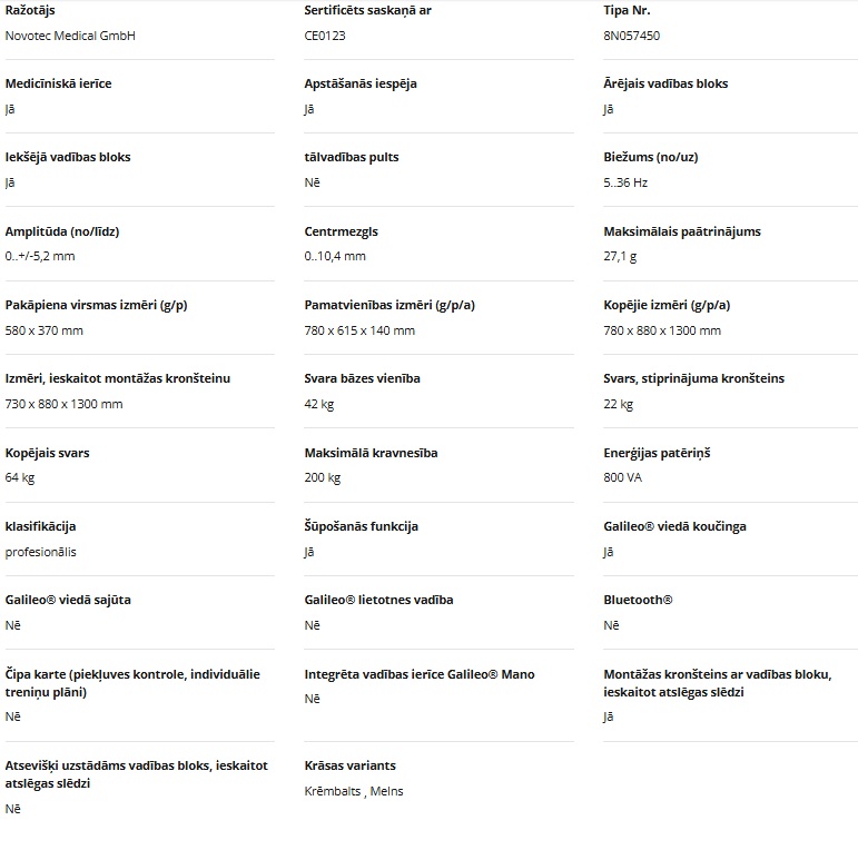 Ar savu lielo platformu un plašo amplitūdu Galileo Med Fit ir lieliska terapeitiska ierīce snieguma uzlabošanai medicīniskās fitnesa nozarē. Tās maksimālā slodzes izturība 200 kg aptver plašu lietotāju loku un ļauj izmantot papildu svarus.